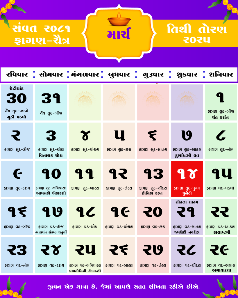 માર્ચ-2025 ના તહેવારો અને મહત્વના દિવસો | March-2025 Gujarati Calendar