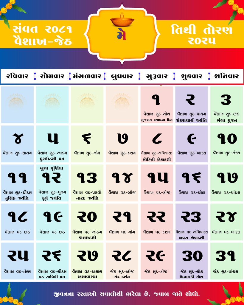 - આ કેલેન્ડર વિક્રમ સંવત 2081 માટે આપવામાં આવેલ છે.
