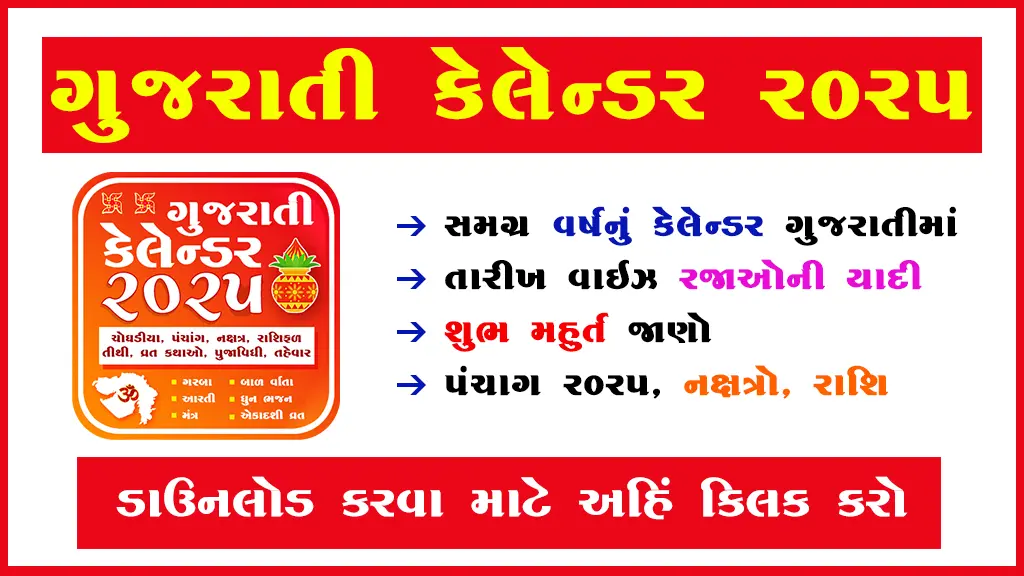 ગુજરાતી કેલેન્ડર 2025 : PDF ડાઉનલોડ અને એપ ફીચર્સ